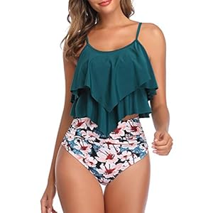 Tankini Swimsuits for women: Ruffled tankini top with high waisted bottom, offers great coverage and hide your tummy; Soft and Removable Padding provide great support; And the Racerback design with adjustable Straps help you to push up.